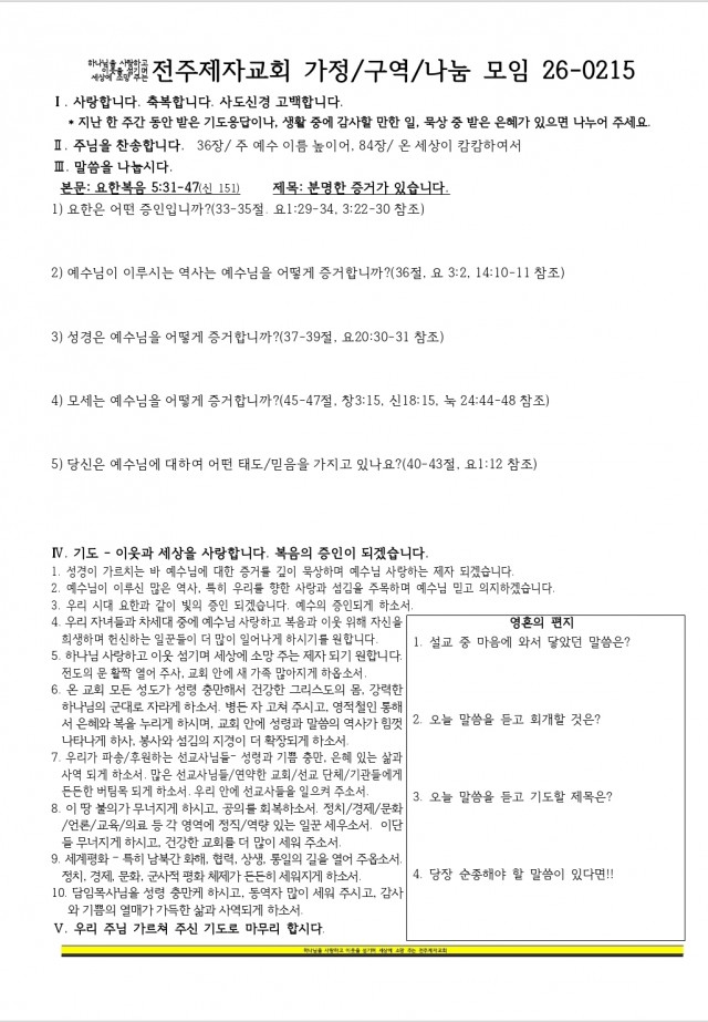 2026.2.15 주보/구역교안 관리자 관리자님의 홈 전체게시물 아이디로 검색 관리자님의 홈 전체게시물 아이디로 검색 3시간 22분전 4 0 LV.17 86% - 첨부파일 : 20260215 주보.jpeg (1.0M) - 다운로드 1 2026-02-14 19:50:53 - 첨부파일 : 20260215 교안.jpeg (449.6K) - 다운로드 1 2026-02-14 19:50:53 다음글 목록 본문 2026.2.15 주보/구역교안 댓글목록 0 등록된 댓글이 없습니다.