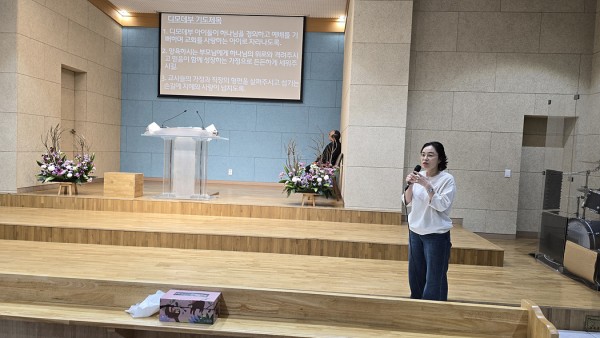 디모데부 기도제목 설명하는 부장 양혜영 집사님 모습.